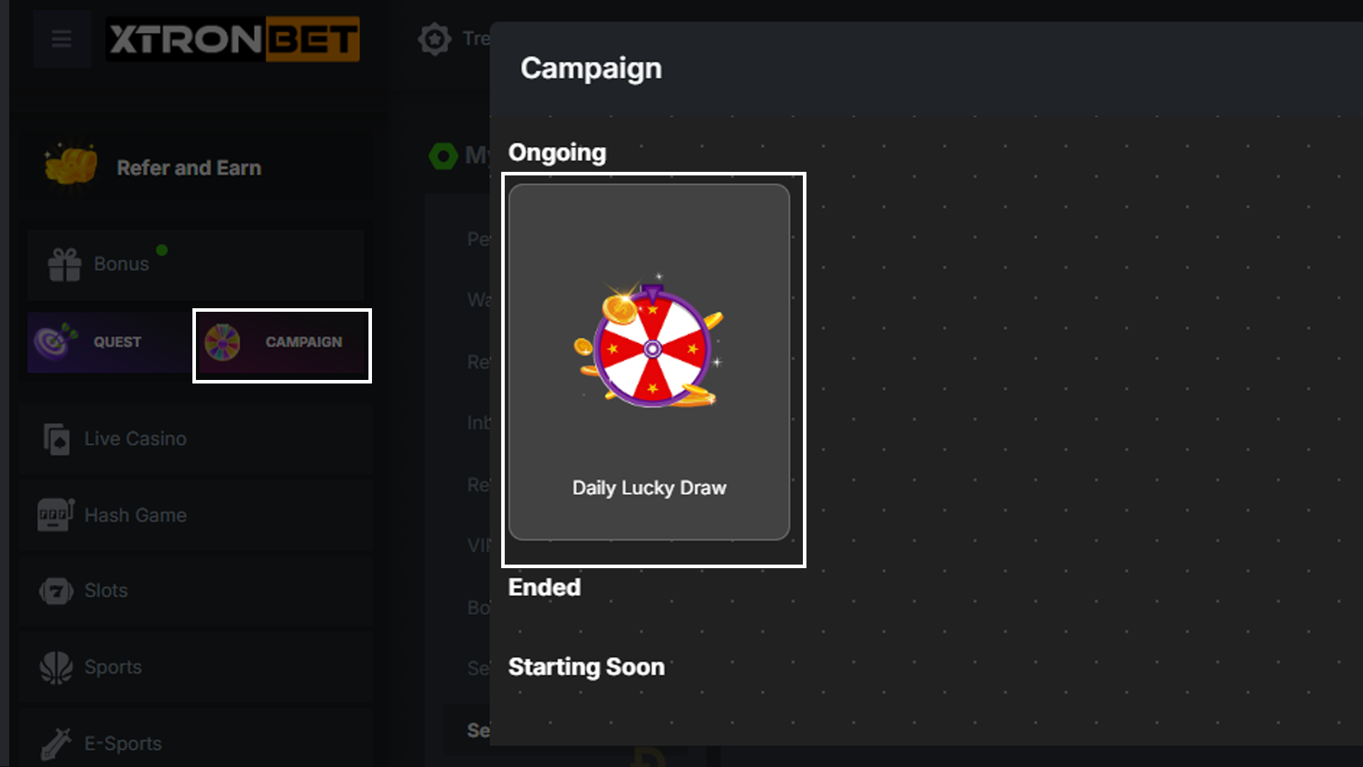 To participate in the "Daily Lucky Draw," make sure you are a member of XTRONBET and follow these steps: